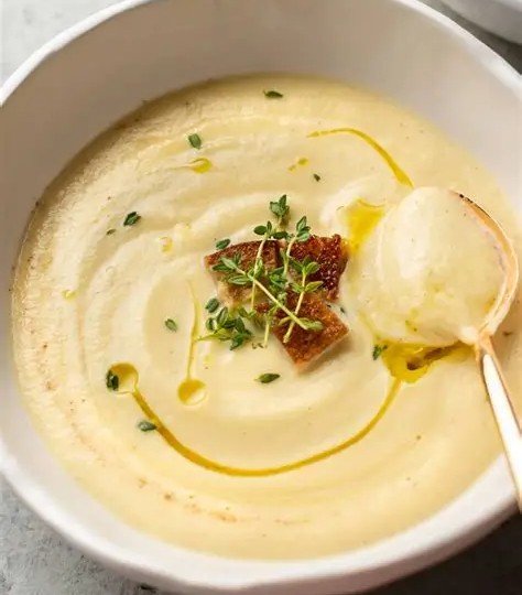 Ladle the soup into bowls and top with the crispy garlic, fresh thyme, and grated parmesan cheese.