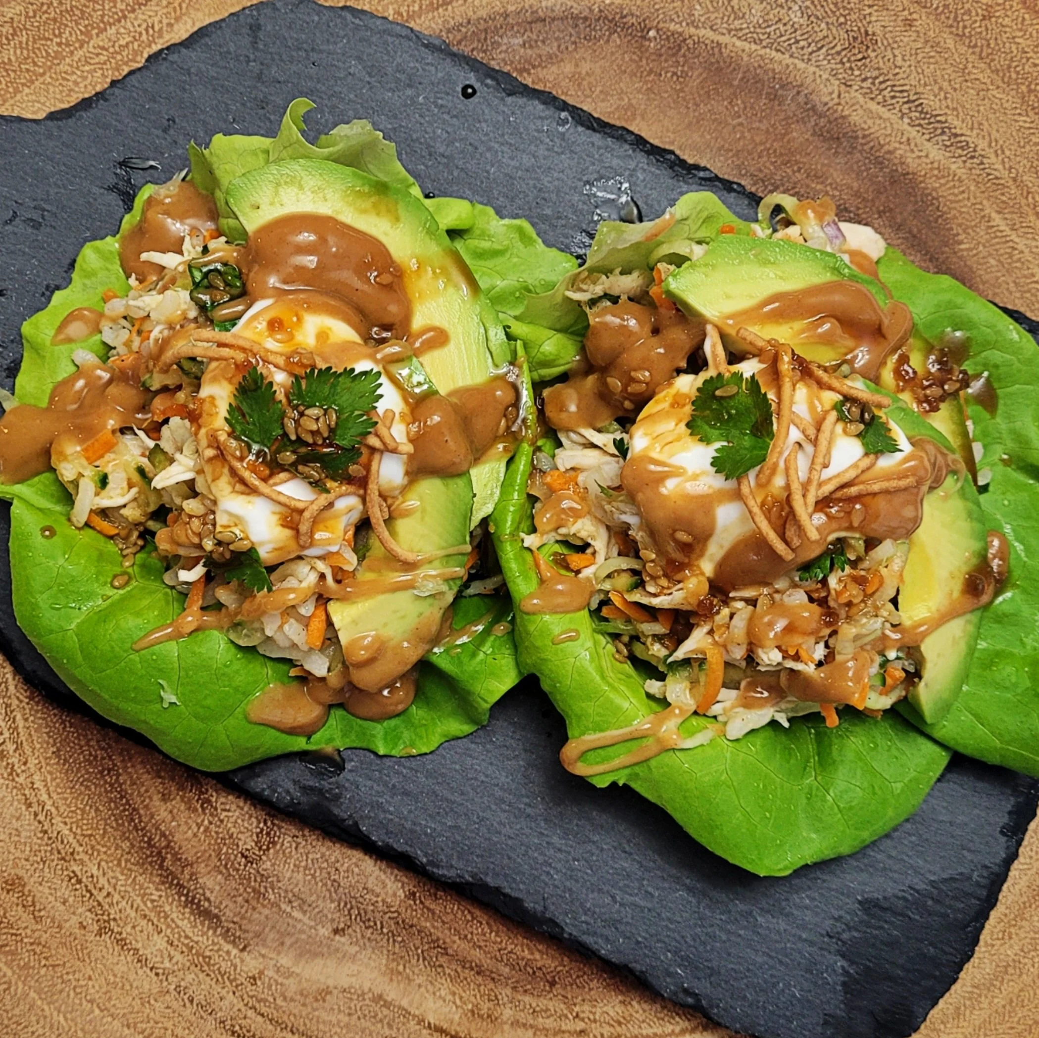 Mix together all ingredients for peanut sauce until fully combined. Set aside.